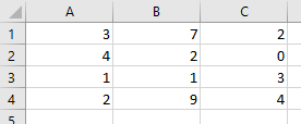 4. Sea la siguiente hoja de cálculo: Si introduce en una celda la función: =MAX(A1:C4) El resultado será: