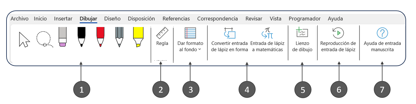 16. En la pestaña Dibujar, ¿Cómo se llama el bloque indicado con el número 1?