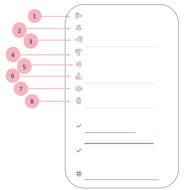 19. En el bloque de Alinear, indica el nombre de la opción señalada con un 3