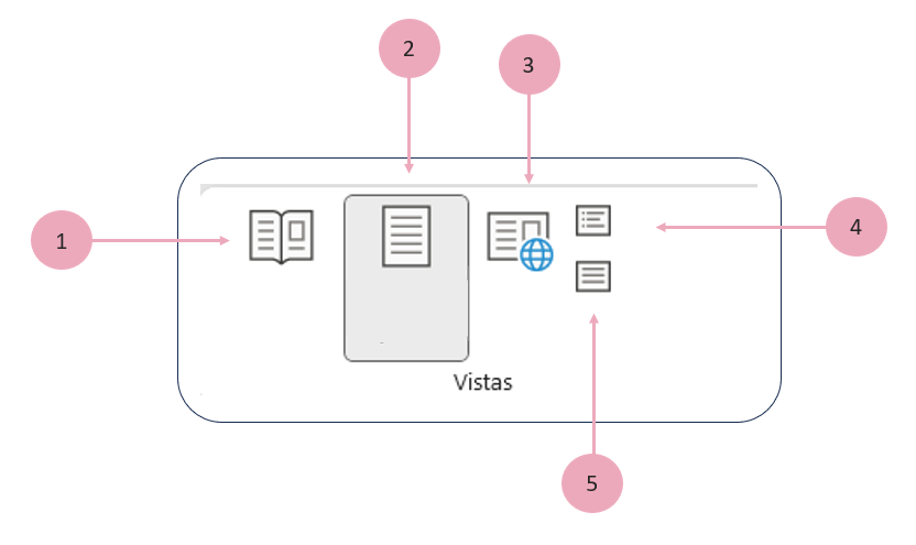 9. En el bloque de opciones Vistas, indica el nombre de la opción señalada con un 5