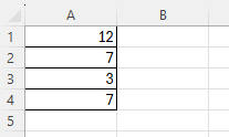 14. Observe la imagen e indique qué resultado devolvería la función indicada: =CONTAR.SI(A1:A4; "=12") + CONTAR.SI(A1:A4; "=7")