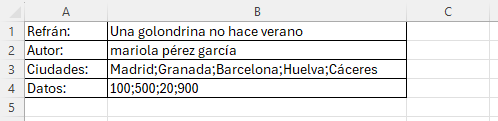 15. Observe la imagen e indique qué resultado devolvería la función indicada: =SI(LARGO(ESPACIOS(B1))-LARGO(SUSTITUIR(ESPACIOS(B1);" ";""))+1>5;"Frase larga";"Frase corta")